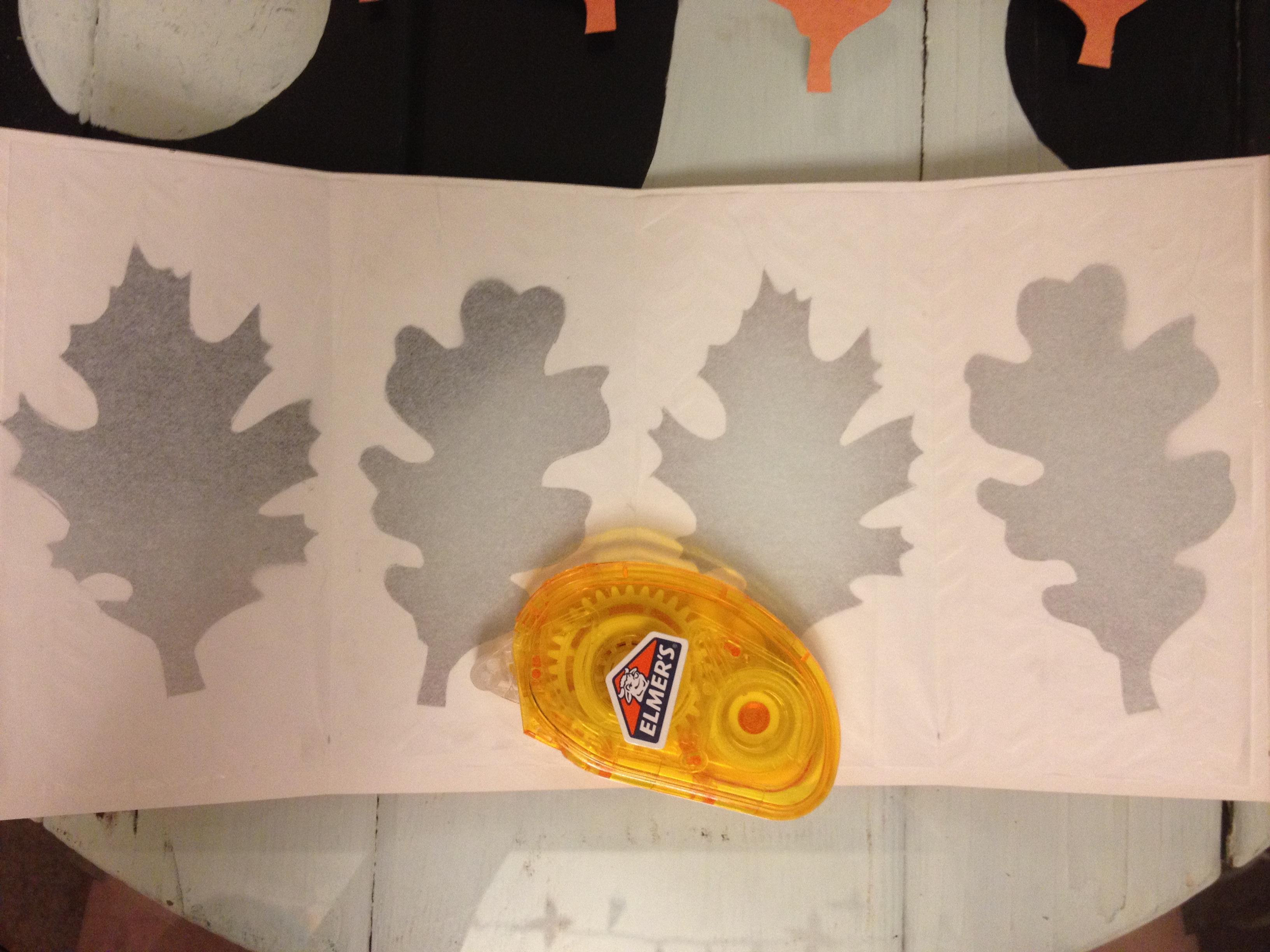 Trace a leaf shape on each of the 4 big panels. You could put anything on there, I just happen to have some leaf templates from the wreath I'm making.